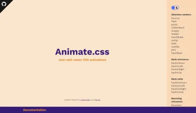 4. Animate.css (Generador de Animaciones): una librería genial, ya que contiene muchas animaciones, lo que debemos de hacer para usarla, es descargar la librería de GitHub o incluir una CDN, para luego controlar todas las animaciones desde el atributo "class" de la etiqueta HTML.