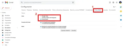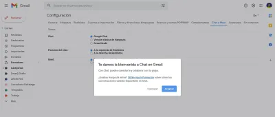 Para poder aplicar este nuevo diseño, Google nos exige la activación de Google Chat, que si en algún momento tuviste Hangouts este paso no lo debes de efectuarlo.